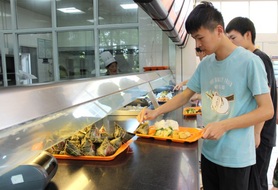 节日当天晚餐时间,学生们陆陆续续地来到在餐厅吃饭,在打饭窗口就可以看见堆如小山似的粽子,每位领到粽子的同学欣喜不已。来自大一的李同学说:“这是我在校以来第一次在食堂吃到免费发放的粽子,还是今年端午节吃到的第一个,感到特别惊喜和感动。”已经在上海某公司实习的大四的周同学欣慰的说道:“马上毕业了,这是我在母校过的最后一个端午节,能在毕业前再次感受到节日的喜庆和学校的温暖,让我十分感动!”同学们吃着端午节的粽子,感受着学校的温暖。