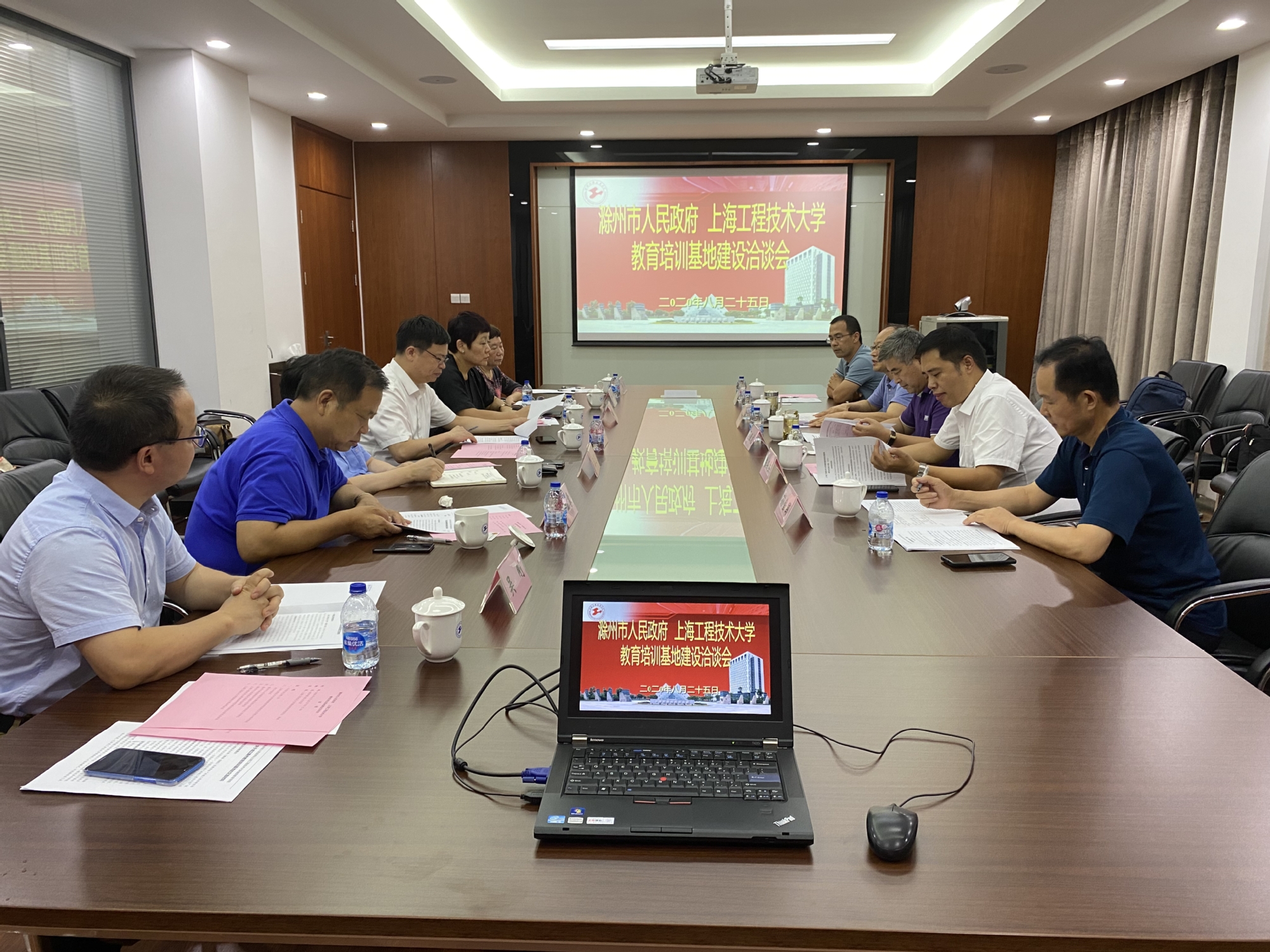 8月25日下午,滁州市政府副秘书长陈兴杰、市人社局局长吴经龙等有关负责同志莅临我校继续教育学院开展教育培训基地建设洽谈会。上海工程技术大学副校长夏春明、高等研究院常务副院长陈思浩、原城市轨道交通学院党总支书记徐馨以及继续教育学院院长谢敏、副院长吴刚出席了会议。会议由继续教育学院院长谢敏主持。