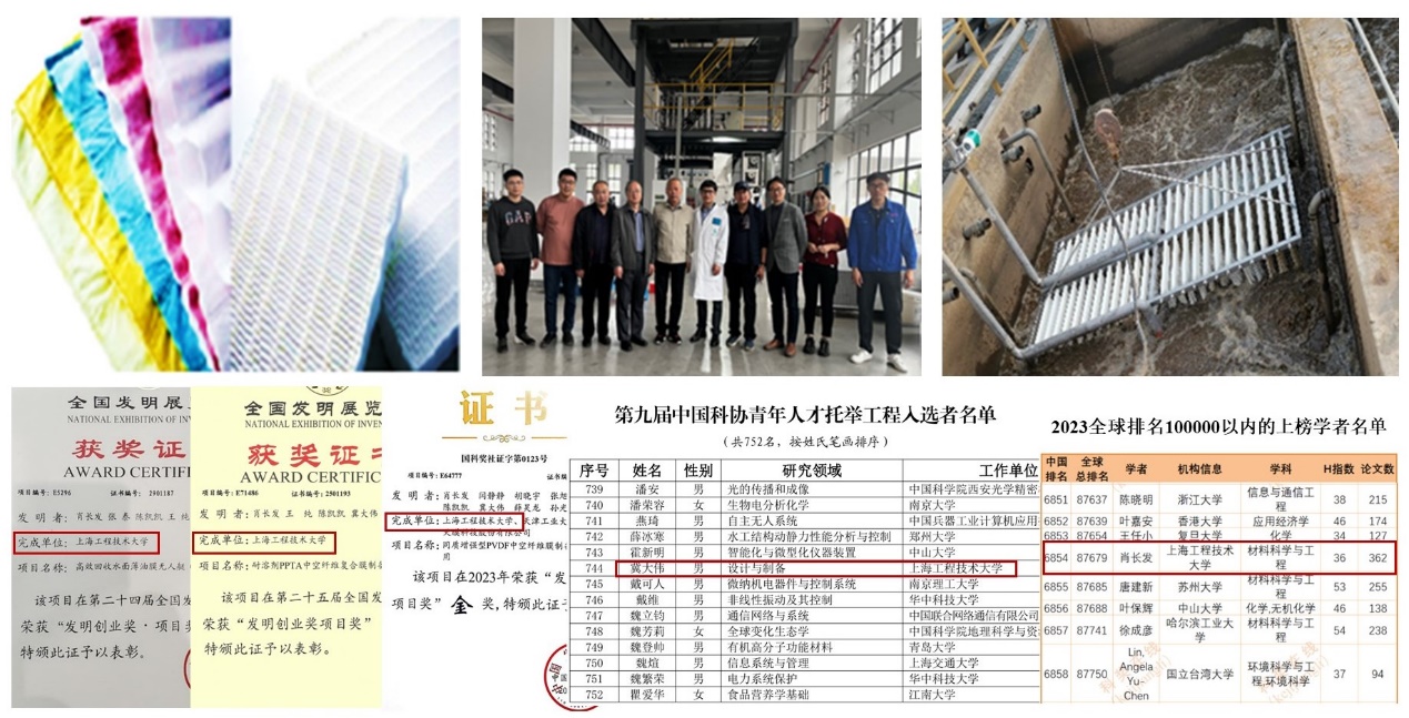 近年来,纺织服装学院在认真做好教学工作的同时,高度重视科研团队建设工作。纤维材料团队自2020年11月获批组建以来,先后承担国家自然科学基金面上项目和青年项目、“十四五”国家重点研发计划项目、中国科协青年人才托举工程项目、江苏省科技计划项目、张家港市产学研前瞻性项目、中国石油化工股份有限公司技术开发项目以及国际合作和企业委托项目等;开发出基于纳米组装杂化的抗菌功能纺织品、建成国内首条百吨级熔融纺丝法含氟聚合物纤维(复丝)生产线、发明的低成本增强型聚烯烃中空纤维膜进入应用试验阶段;2021年,获批中国纺织工程学会“氟聚物纤维科研基地”,2023年,获批中国纺织工业联合会“纺织行业纤维膜制备技术与应用重点实验室”;连续三次荣获中国发明协会主办的全国发明展览会金奖;团队青年教师冀大伟博士入选2023年(第九届)中国科协青年人才托举工程(A类)、陈凯凯副教授当选学校青年科技理事会会长,团队带头人肖长发教授2020年~2022年入选爱思唯尔中国高被引学者、2022年和2023年入选“全球顶尖前10万科学家排名”。