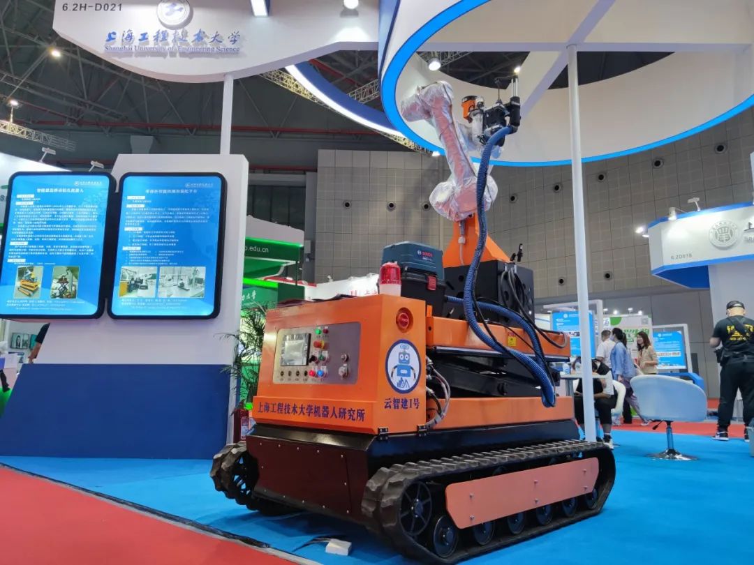 上海工程技术大学展出的智能建造移动钻孔机器人