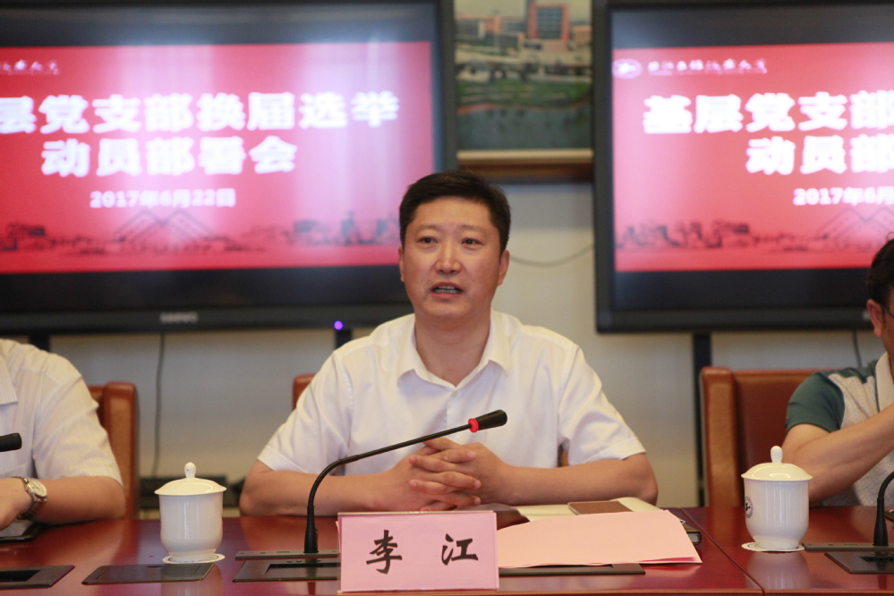 会上,李江书记作了重要讲话。他指出,本次换届选举工作是在党的十八届六中全会要求全面从严治党,提出加强基层党建,保证基层党组织充分发挥作用的新形势、新要求下进行的,是认真落实“两学一做”学习教育成果的重要体现。他对各级党组织和党员提出了三点要求:一要统一思想认识,切实增强做好换届选举工作的责任感和使命感,将其与推进“两学一做”学习教育常态化制度化,推进学校各项事业不断向前发展,推进党内民主建设,激发基层组织活力紧密集合;二要加强领导,吃透精神,强化责任,把握要求抓好重点,积极稳妥的推进各项工作;三要严明纪律、严肃教育、严密组织,努力营造风清气正的选举环境。