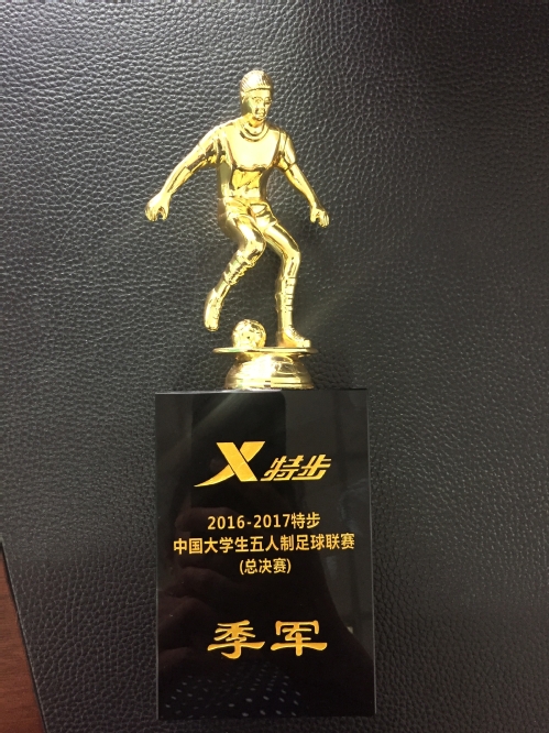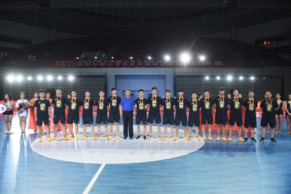 7月5日晚,由中国大学生体育协会主办的2016-2017“特步”中国大学生五人制足球联赛总决赛在内蒙古财经大学落下帷幕,我校足球队夺得比赛季军,队长丁顺杰获最佳射手殊荣。