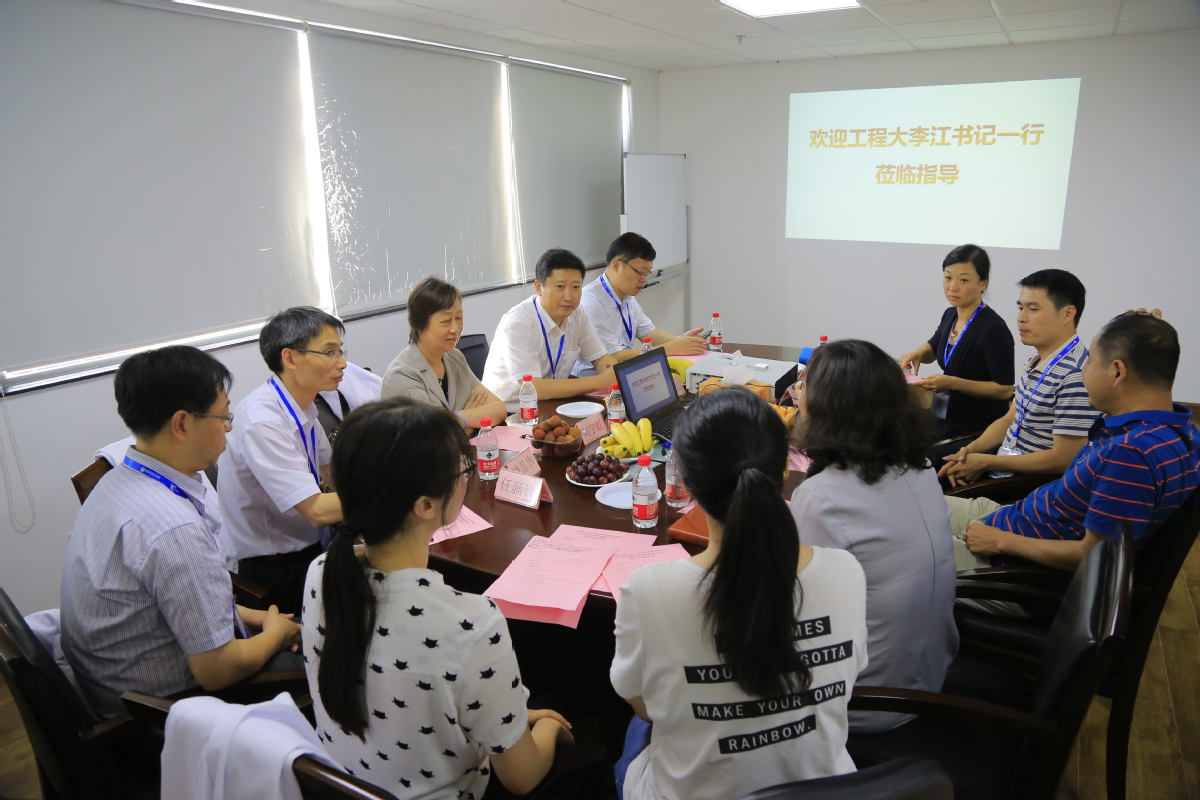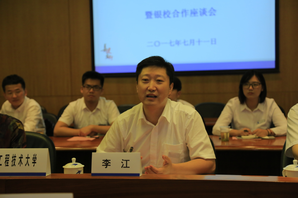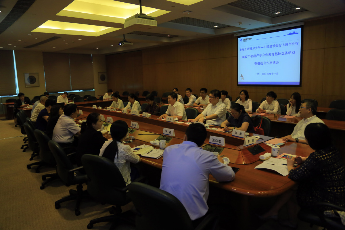 李江书记一行受到了建设银行上海市分行党委书记、行长段超良,党委委员、副行长齐红等的热情接待。李江书记看望了参加产学合作教育的学生,并代表学校向建设银行上海市分行长期以来对我校在人才培养、学科发展、科学研究、大学生就业及产学合作教育等方面给与的大力支持和帮助表示感谢,希望通过此次走访,进一步加强银校双方的友谊及在人才培养等方面的合作,为社会和行业企业培养和输送高质量人才。建设银行上海市分行党委书记、行长段超良对李江书记一行来访表示欢迎,介绍了建行成立、发展及改革的历史,对建行将来的发展、创新做出了展望,他表示欢迎我校学生到建行实习,希望同学们在实习过程中多了解银行实务、多发现问题并提出问题。机构业务部总经理周瑾介绍了在建行工作的工程大校友情况,产学合作学生实习工作安排及银校合作最新进展。个人金融部总经理李莉介绍了银校合作新型实训基地——校友E银行项目。我校2001届校友、第一支行副行长严娜,2013届校友、黄浦支行业务六部客户经理李家骏,及产学合作教育学生代表管理学院2015级学生邓兴浩,分别从不同角度作了发言。
