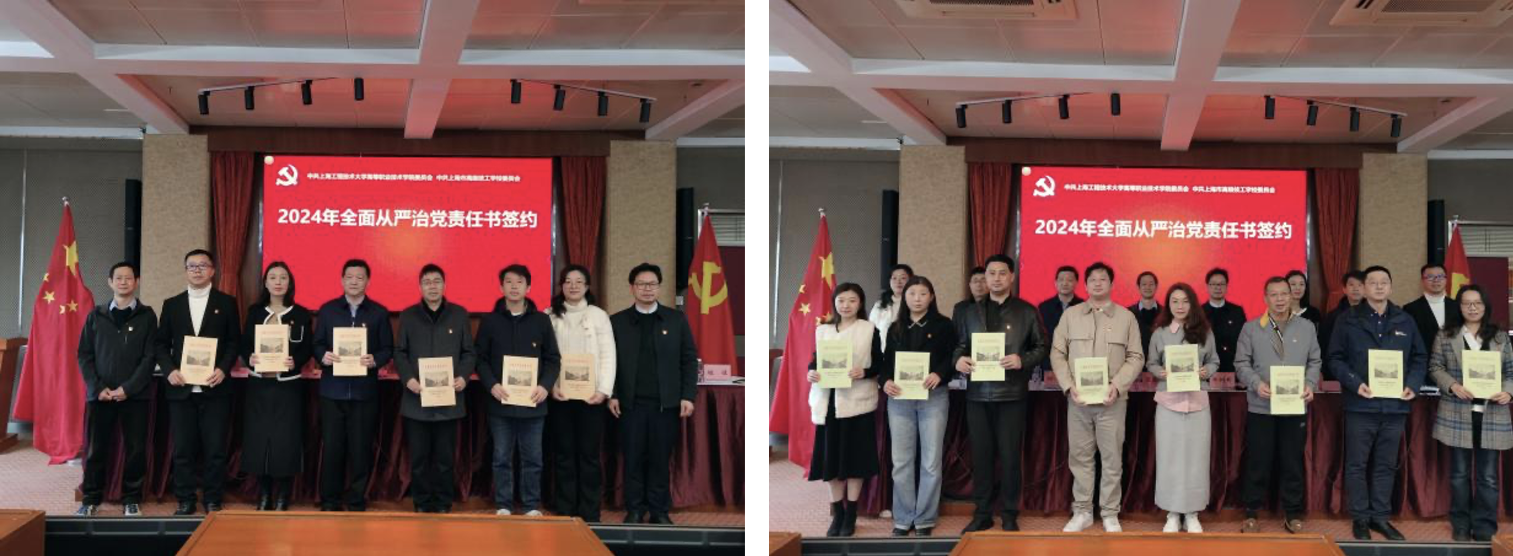 本次大会还举行了全面从严治党责任书签约仪式。学院校领导正职与副职,全体学院校领导与职能科室及教学部门负责人代表分别签约并颁发了2024年学院校全面从严治党责任书。