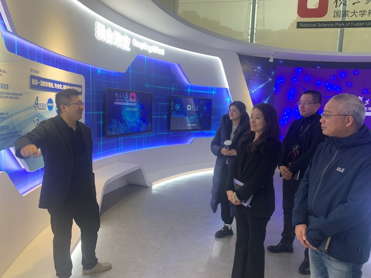 会前,我校科技园一行参观了展厅,详细了解了复旦科技园区的发展历程、功能定位、空间布局、科创实践等。