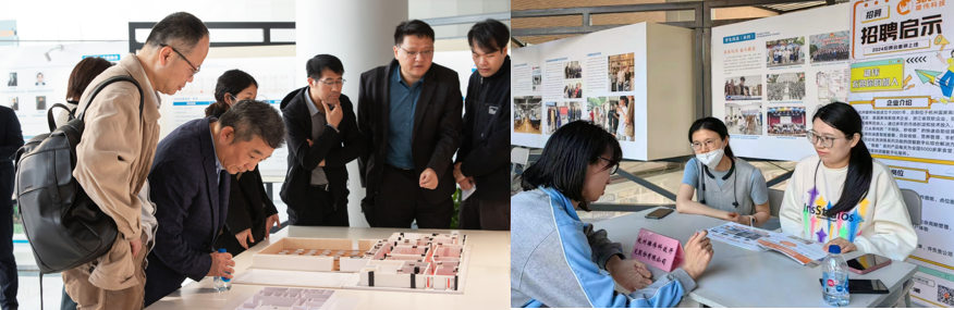 会后,与会人员前往艺术楼一楼大厅进行交流并观看工业设计专业智慧商厨系统工程方向人才培养成果路演,并开展工业设计专业商厨方向就业实习专场招聘会。