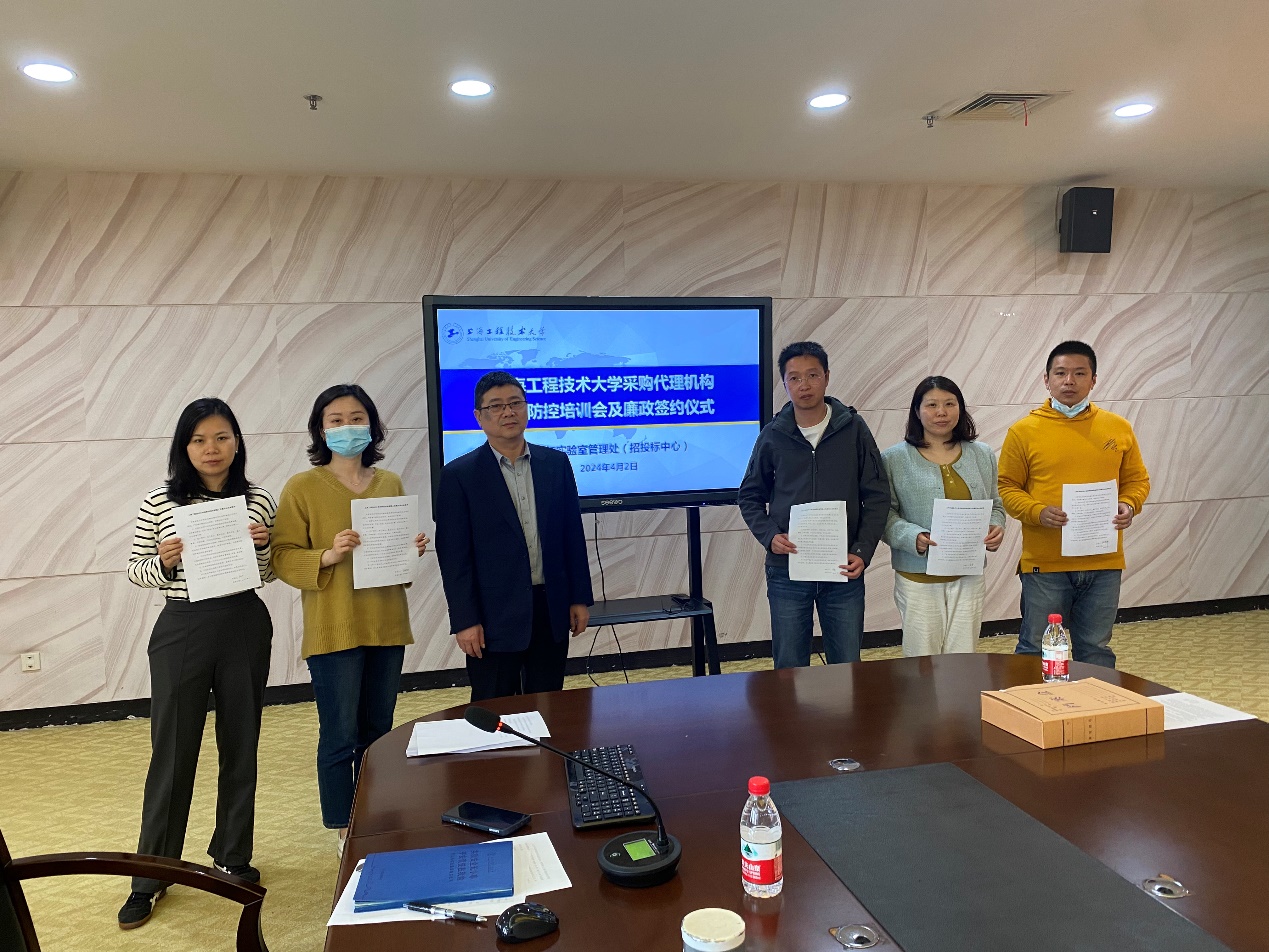 为进一步加强学校对采购代理机构的监督管理,确保招标采购工作的高质量开展,4月2日,学校召开采购代理机构风险防控培训会及廉政签约仪式。资产与实验室管理处处长张志刚、审计处处长茅蕾、招投标中心有关人员及学校采购代理机构负责人参加会议。会议由张志刚主持。