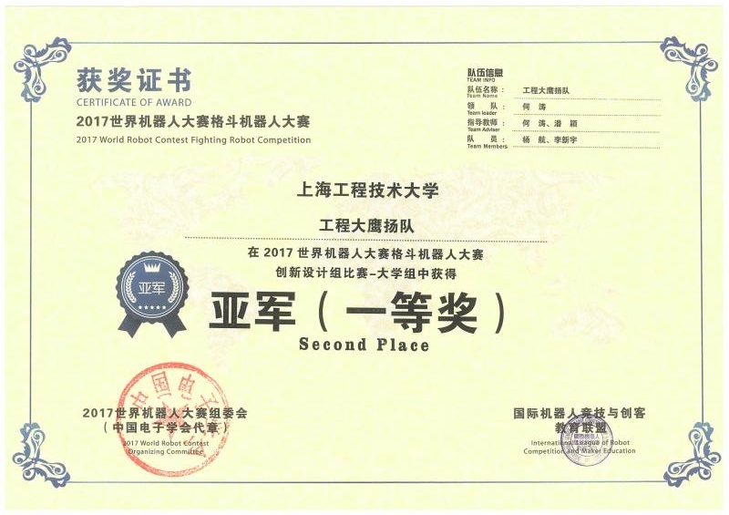 8月23日至8月27日,在北京举行的世界机器人大赛上,经过激烈角逐,我校获得了一等奖1项、二等奖1项、三等奖3项、“优秀指导教师”1项的优异成绩。