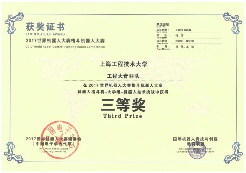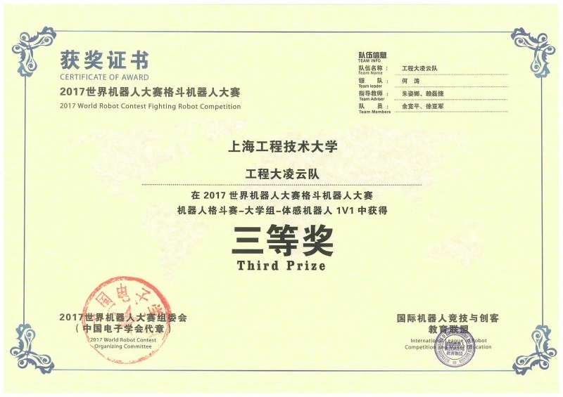 机器人大赛被誉为机器人界的“奥运会”。 此次世界机器人大会由北京市人民政府、工业和信息化部、中国科学技术协会主办,中国电子学会等承办。大赛吸引了包括清华大学、香港理工大学等在内的全球10余个国家和地区的1017支队伍参赛,4500余人参加。我校首次派出了由机械工程学院学生组成的代表队。