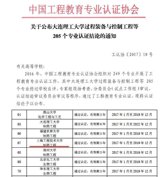 推动工程教育专业认证,完善教学质量保障体系,2016年制药工程专业通过了国家工程教育专业认证协会的工程教育专业认证。学校以制药工程专业工程教育专业认证为契机,完善教学质量保障体系,推动全校工科专业的认证工作。