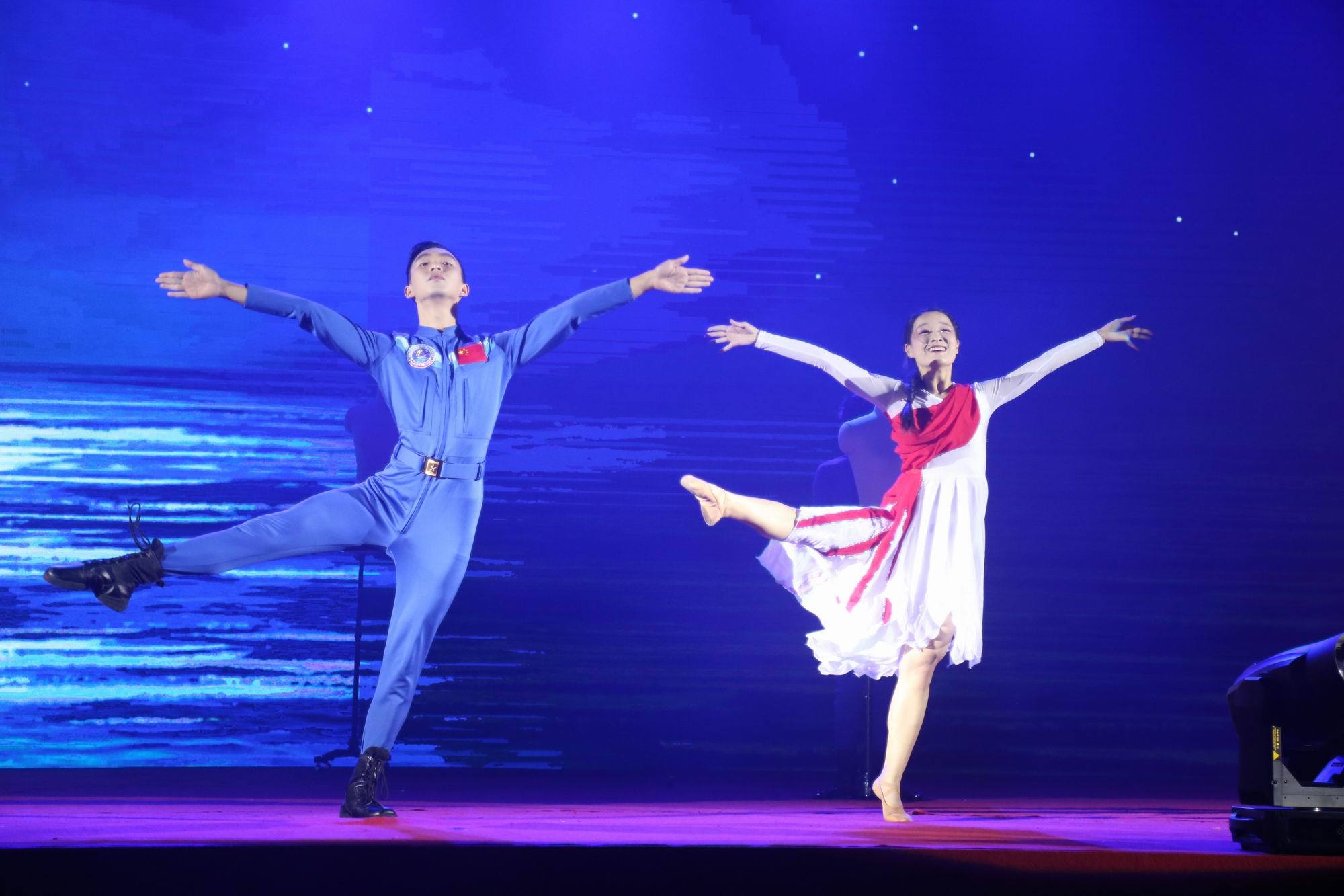上海学子用精心编排的原创歌舞节目为这欢庆的时刻增添了喜悦的色彩。现场还邀请到老一辈国家建设者、高校青年志愿者代表和青海果洛青年音乐人与学子们互动。