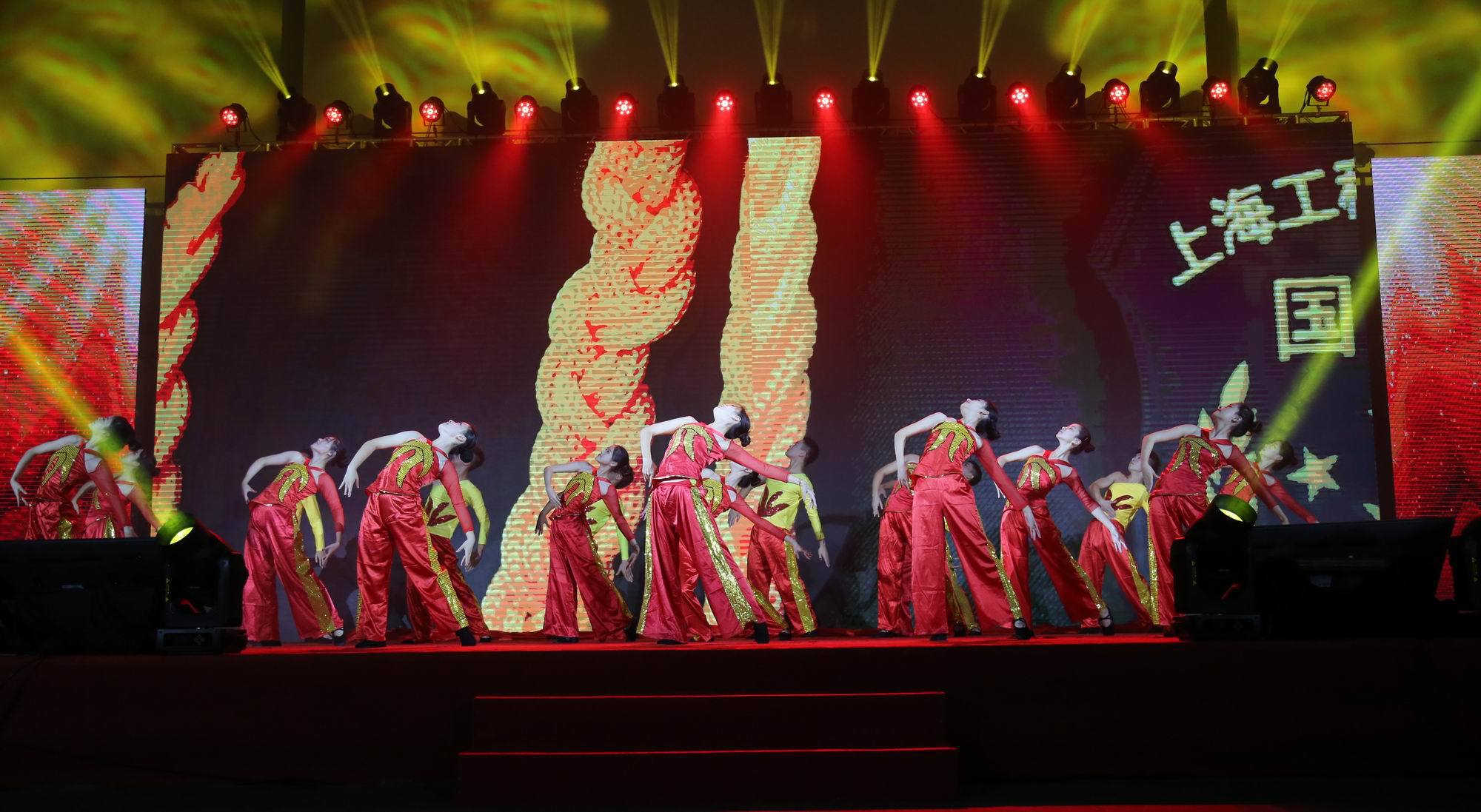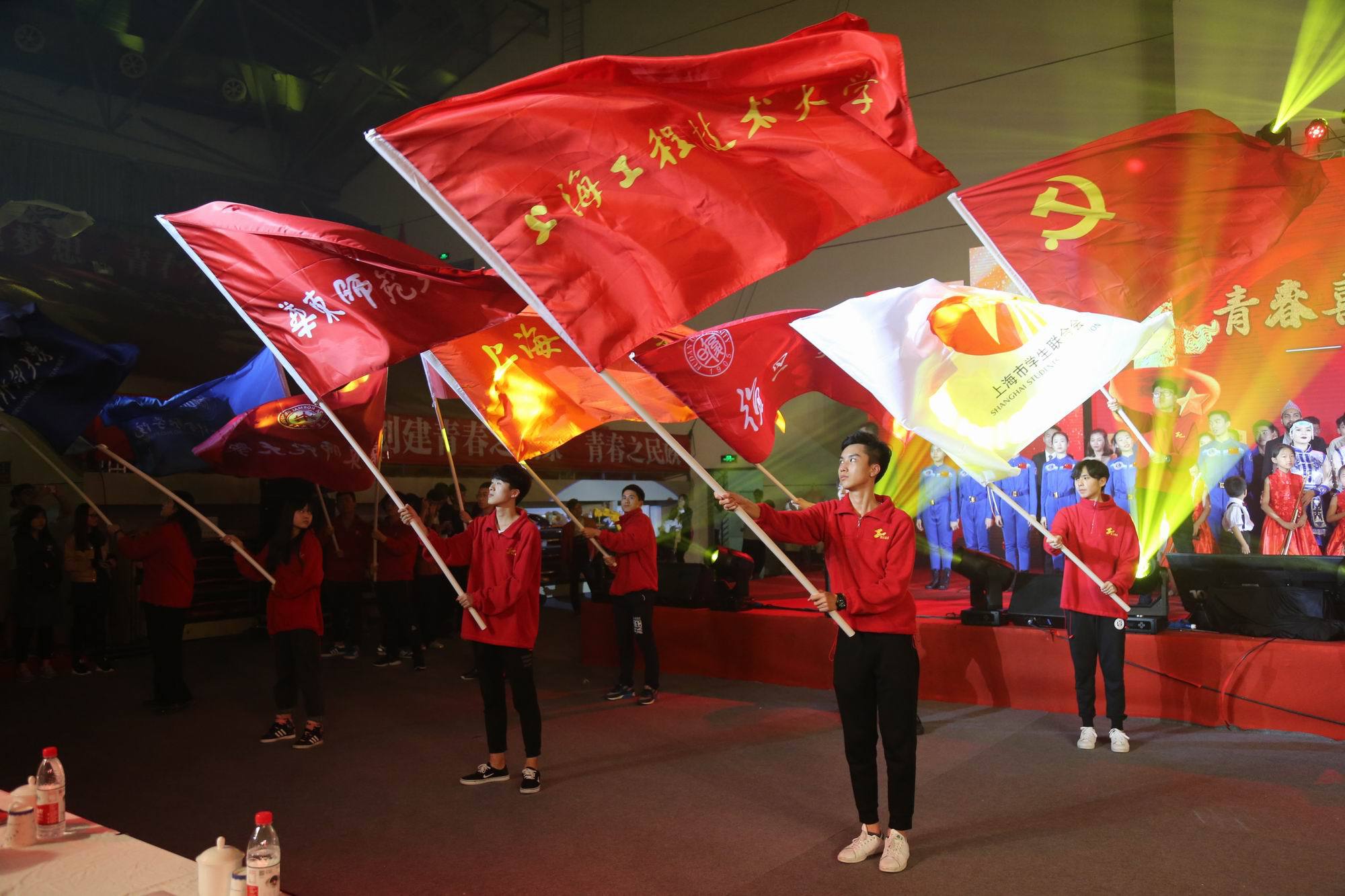 活动分为“不忘初心跟党走”、“青春建功十三五”和“青年共筑中国梦”三个篇章,我校带来舞蹈《红旗魂》、《工匠之心》,青海省果洛青年音乐人和上海音乐学院带来歌曲《彩虹哈达》,华东政法大学带来合唱《我和我的祖国》,上海立信会计金融学院、东华大学、上海视觉艺术学院、上海对外经贸大学等高校也带来精彩表演。