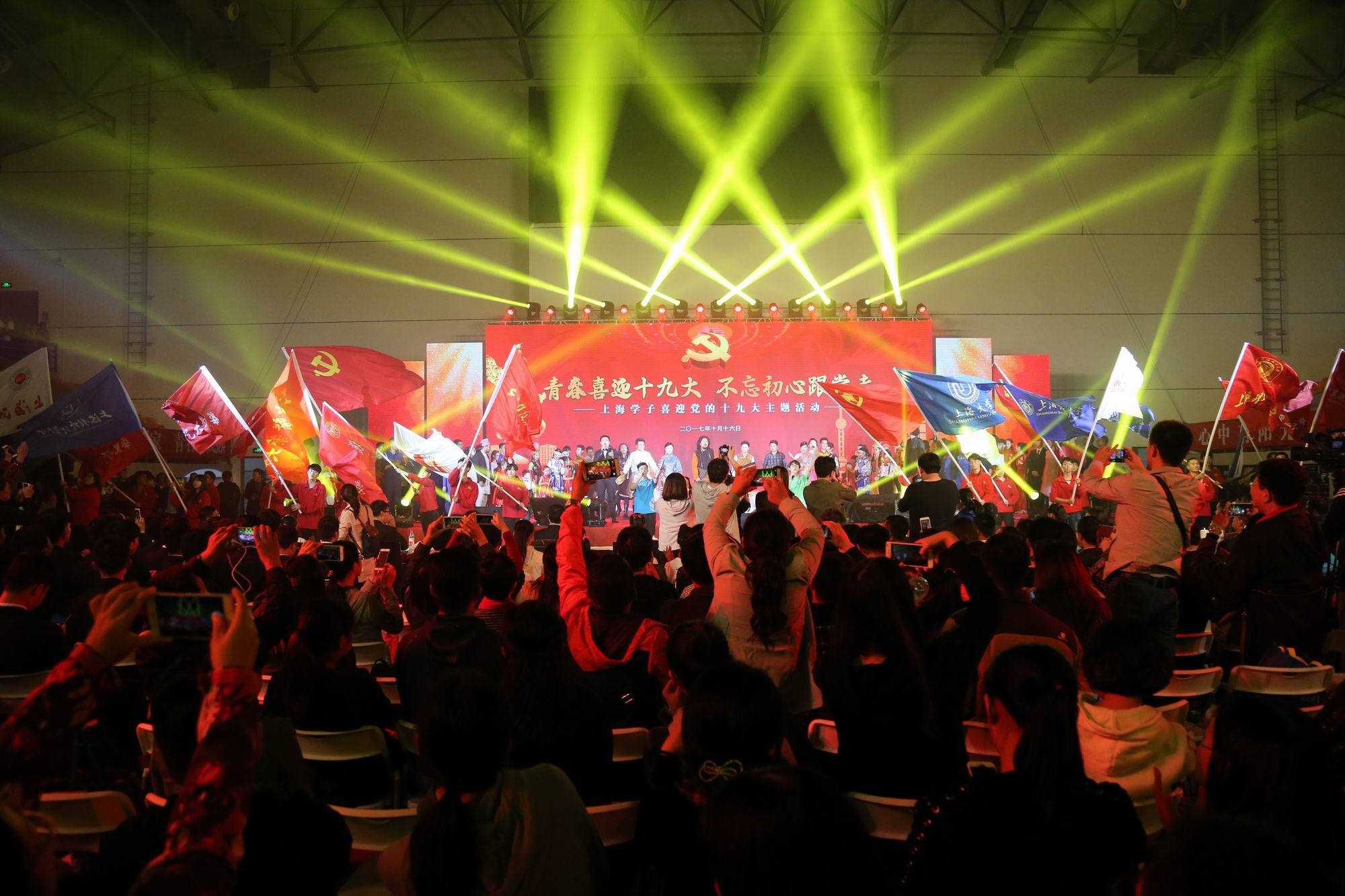 10月16日晚,由共青团上海市委员会、上海市学生联合会主办,上海工程技术大学承办的“青春喜迎十九大,不忘初心跟党走”上海学子喜迎党的十九大主题活动在我校体育馆隆重举行。团中央学校部副部长李骥、团中央学校部副部长宋来、校党委书记李江、校党委副书记、副校长史健勇、团市委副书记刘刚、松江区团区委书记丁汀等领导出席活动。此外,还有来自上海各大、中、小学校2000余名师生代表齐聚一堂,喜迎党的十九大顺利召开!学子们用自己的方式,重温初心,讴歌辉煌,拥抱未来;用自己的语言,表达永远跟党走的心声。