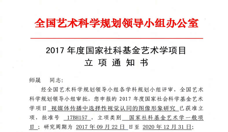 近日,全国艺术科学规划办公室正式公布了2017年度国家社科基金艺术学项目的评审结果,我校服装学院师晟副教授申报的项目“视媒体传播中选择性视觉认同的图像形象研究”,获批国家社科基金艺术学一般项目。这是我校首次获批国家社科基金艺术学项目,取得了历史性突破。