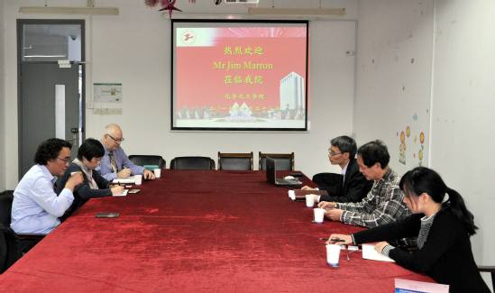 10月23日下午,来自澳大利亚的Natrasol公司Jim Marron一行3人应邀到访化学化工学院,饶品华院长在实训楼4403会议室接待了Jim Marron一行。