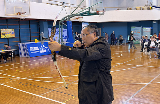 夏斯云张弓搭箭,启动离退休教职工第十三届程园健身趣味活动。孙文钧介绍了今年程园健身趣味活动内容并致辞。他表示,很高兴看到各位老领导、老同志们相聚一堂,预祝健身趣味活动圆满成功,愿大家身体健康,快乐每一天。