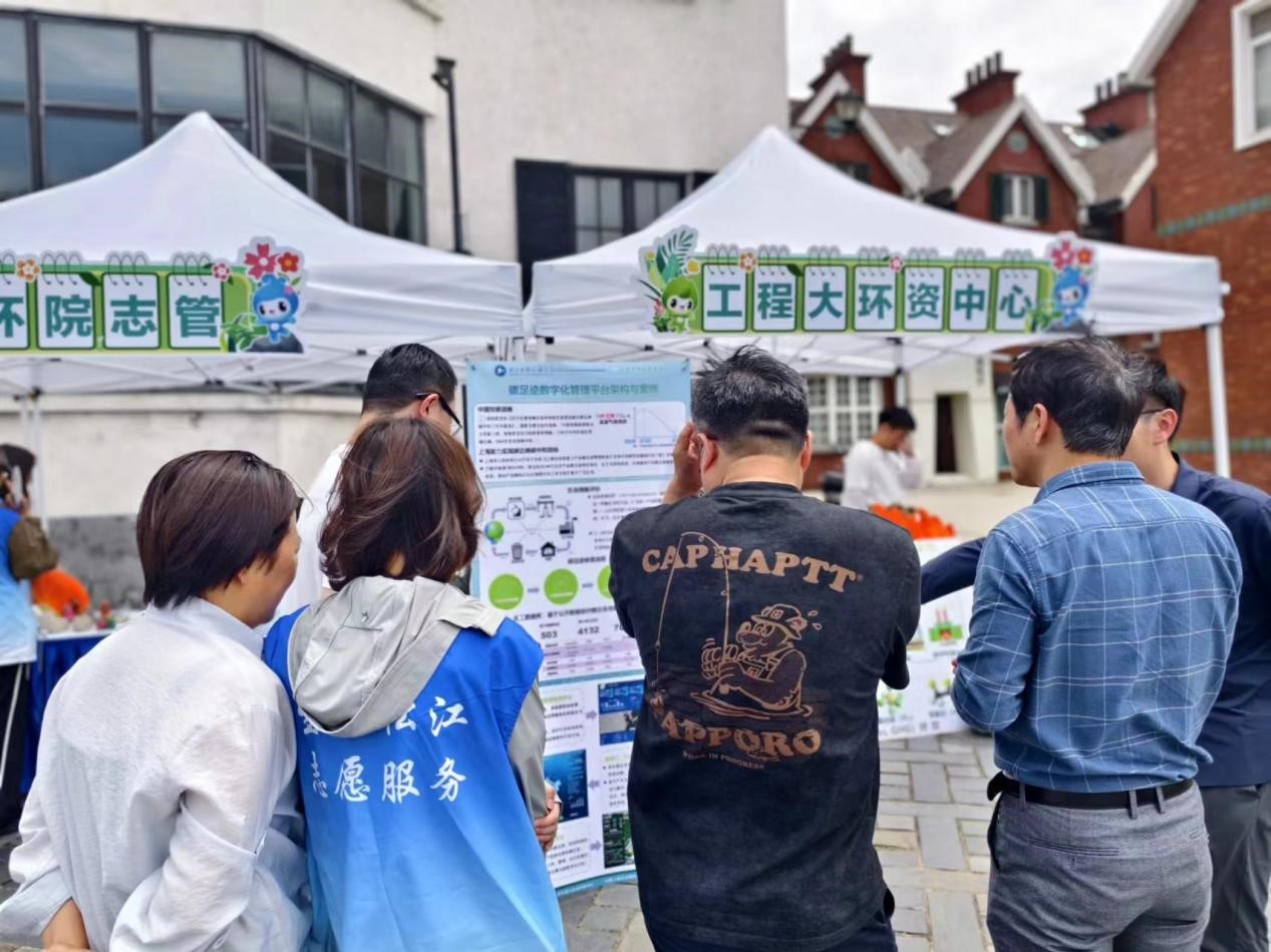 6月2日,由松江区生态环境局举办的六五环境日系列活动之环保集市在泰晤士小镇的假日广场火热开启,区内30余家环保科技企业、社会公益组织、高校等在集市上为大家展示环保产品、分享绿色生活智慧。我校化学化工学院环境与资源创新中心陆嘉麒老师带领学生向参观者科普碳足迹相关知识,展示学院研究成果,与各单位交流学习。