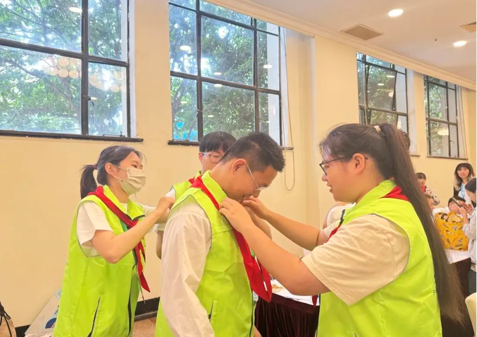 6月1日,中国少年先锋队上海市第九次代表大会在上海展览中心举行。虹口校区“小螺钉”青年志愿服务队倾力保障大会顺利进行,从前期人员选拔、岗位培训到大会当天接车引导、会务服务,志愿者们认真负责,努力为大会的胜利召开提供最优质的服务,圆满完成1800余人的保障服务工作。