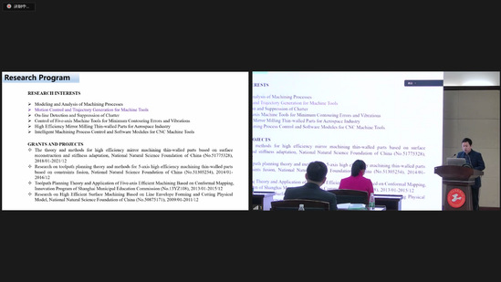 在大会的主旨报告环节,日本山形大学RINOSHIKA AKIRA教授,爱尔兰沃特福德理工学院Patrick Lynch教授,美国HXK技术公司总经理辛千凡教授,美国密歇根大学-上海交通大学联合学院(UM-SJTU JI)Hamade教授,上海工程技术大学张立强教授分别做了题为“Recent Research Progress on Energy Saving Pneumatic Conveying of Bulk Solids”“Achieving a Competitive Advantage with Industry 4.0 through the Integration of People, Process and Technology”“System Design: Strategic Approach for Power Machinery R&D”“Novel applications of high voltage electrostatics & corona discharge to air filtration and ventilation, enhancement of automobile catalytic converters, and disinfection of bio-matters such COVID19 virus and HIV/AIDS”“Acceleration Smoothing Algorithm Based on Jounce Limited for Corner Motion in High Speed Machining” 的精彩报告,就智能制造、机械工程中的热点与难点问题与参会者进行了深入交流。