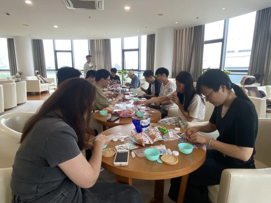 师生共同制作毕业纪念品——创意杯垫制作环节。大家围坐一起,利用各种材料,亲手设计并制作独一无二的杯垫,每一件作品都蕴含着对学院生活的回忆与不舍。这一环节不仅增进了师生间的情谊,也让毕业生们带走了一份特别的、由自己亲手创造的毕业记忆。