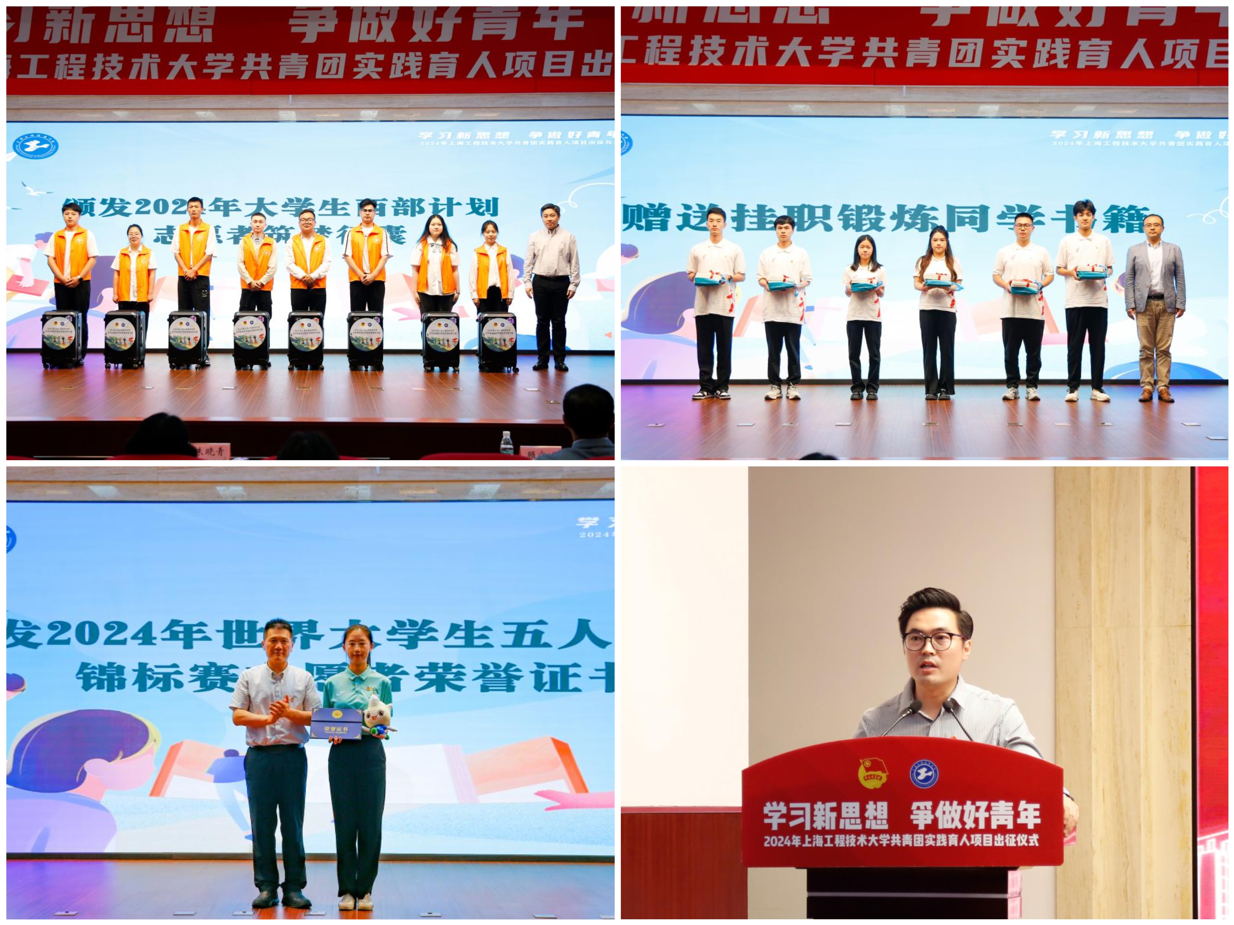 6月26日下午,“学习新思想、争做好青年”2024年上海工程技术大学共青团实践育人出征仪式在图文信息中心第二报告厅顺利举行。