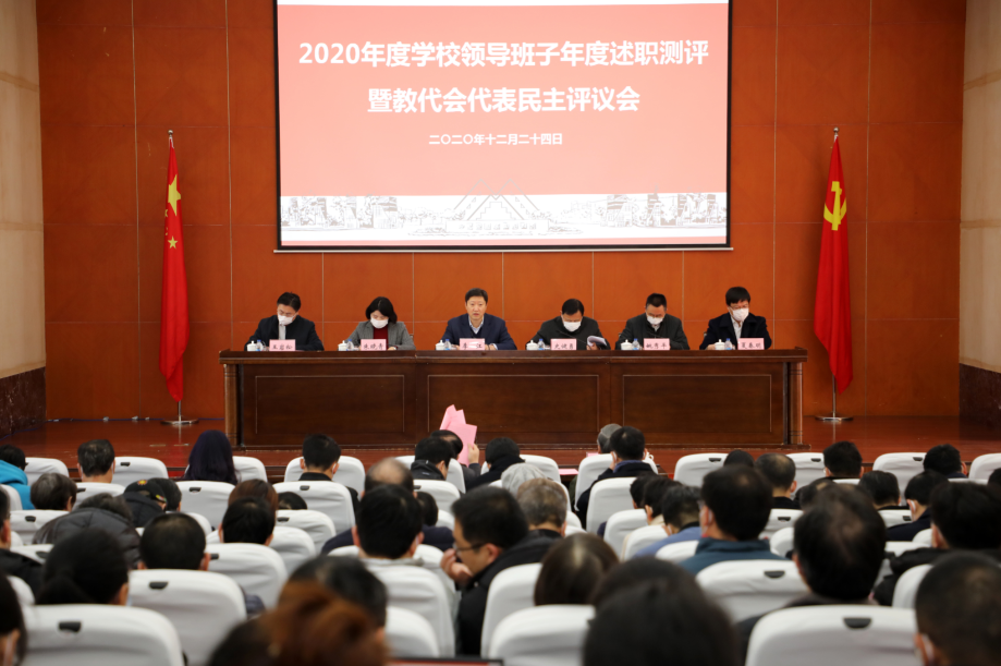 为进一步加强学校领导班子建设,切实发挥好考核的引领导向和检查督促作用,扎实推进学校新一轮高质量发展,根据市委组织部、市教卫工作党委有关工作要求,12月24日,我校在行政楼B301会议室召开了2020年度校领导班子年度述职测评暨教代会代表民主评议会。全体校领导、两委委员、中层正职干部、老同志代表、教代会代表、党代会代表、教授代表、民主党派代表等出席会议。会议由校党委副书记、副校长朱晓青主持。