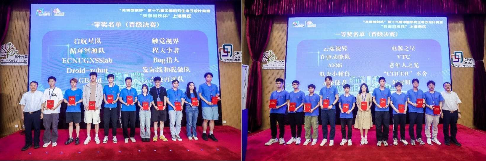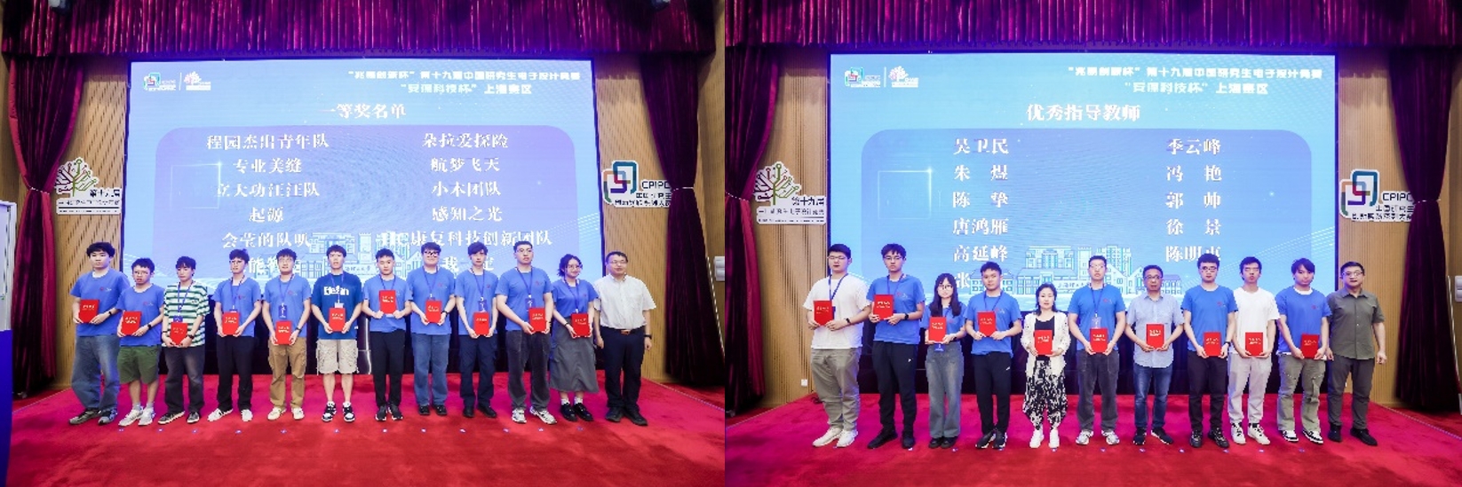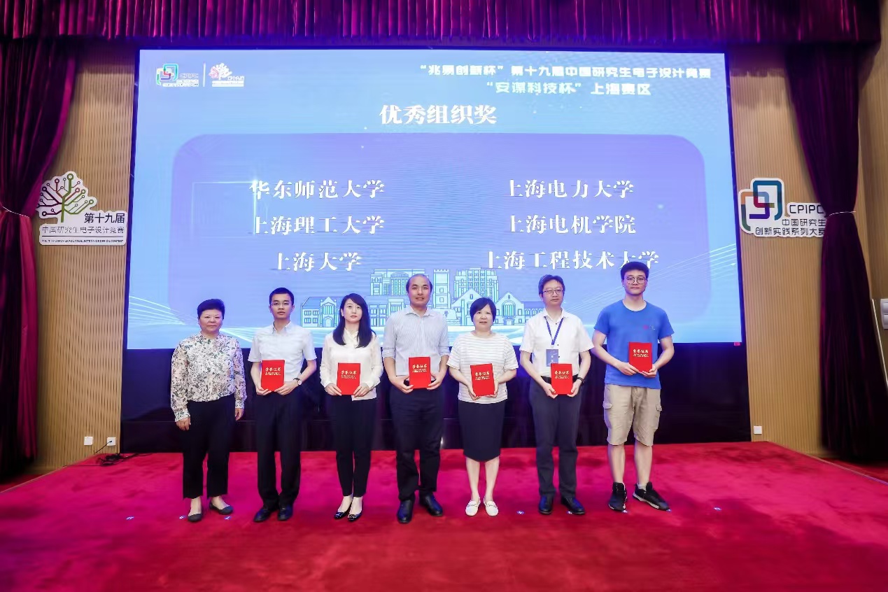 7月12-13日,“兆易创新杯”第十九届中国研究生电子设计竞赛“安谋科技杯”上海赛区决赛在上海理工大学顺利举办。来自沪上13所研究生培养单位的研究生学子带着最新电子设计作品现场角逐。最终,我校共有9支队伍获上海赛区一等奖,其中2支队伍晋级全国总决赛;22支队伍获上海赛区二等奖;21支队伍获上海赛区三等奖;9名指导教师获上海赛区优秀指导教师;我校荣获优秀组织单位。7月21日,商业计划书专项赛初赛评审结果发布,我校共有2支队伍获一等奖,3支队伍获二等奖,2支队伍获三等奖,2名指导教师获优秀指导教师,我校荣获优秀组织单位。7月22日,企业命题初赛结果发布,我校共有1支队伍获二等奖,4支队伍获三等奖,1支队伍获华为专项奖三等奖。