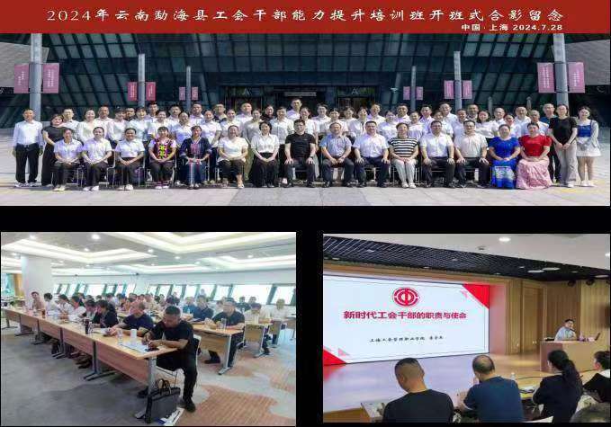 7月28日上午,由松江区总工会主办,我校继续教育学院承办的“2024年云南勐海县工会干部能力提升培训班”在松江区工人文化宫303教室开班,松江区总工会副主席余永丰、上海市援滇干部联络组西双版纳州小组成员顾文超等出席开班典礼。