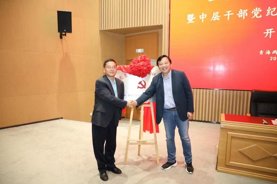 开班式后,校党委副书记史健勇与青海两弹一星干部学院副院长毛玉金共同为校院共建“党员干部教育培训基地”揭牌。