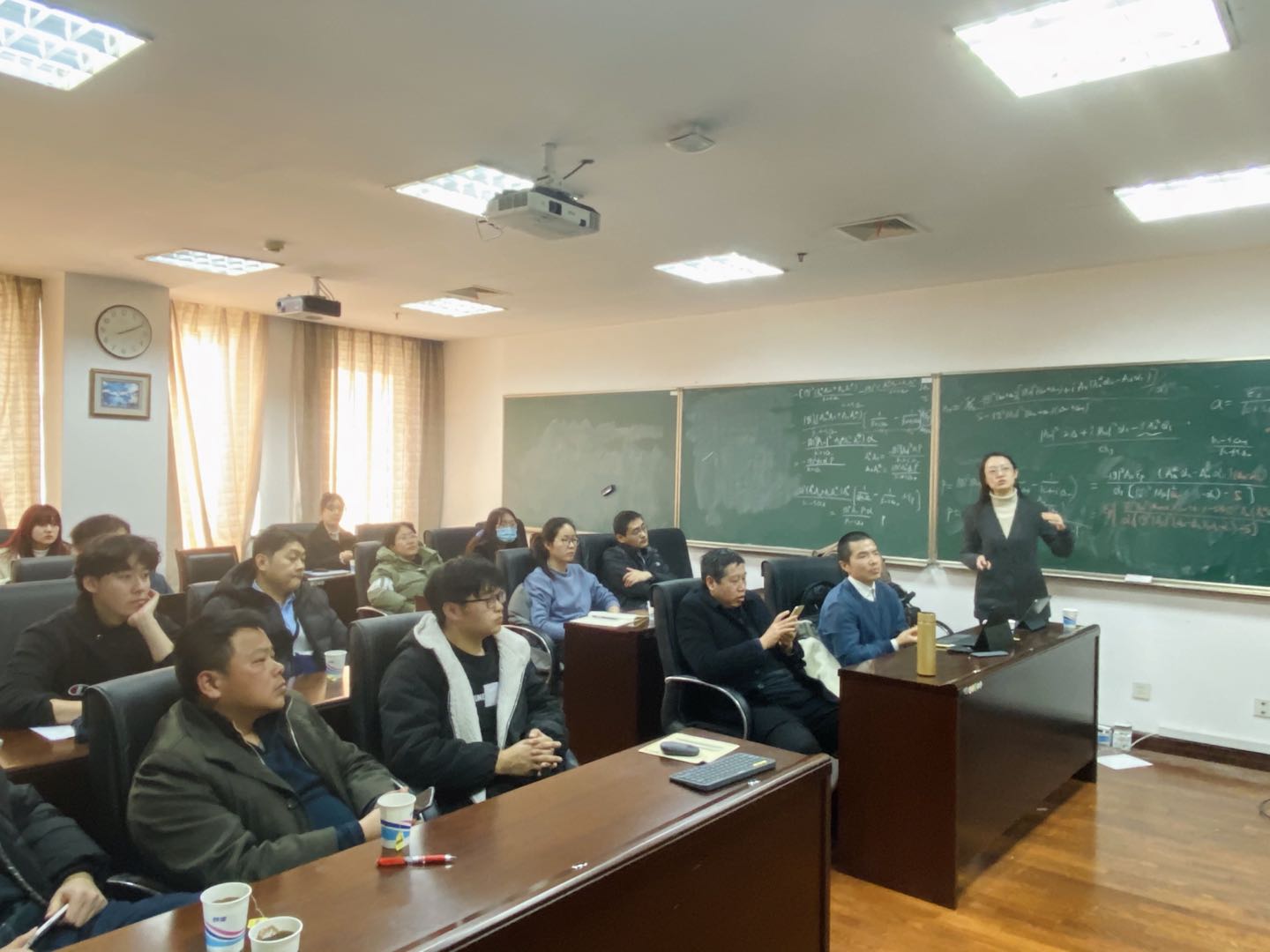 报告会上邓雪梅副研究员首先介绍了相对论的背景知识,通过介绍世界上第一台原子钟引出了高精度时频标准,为天体测量技术提供了重要基础,引出了高精度数据归算与相对论的联系。讨论相对论时间比对问题、相对论参考系问题、高精度数值历表问题。从相对论时空出发,谈论未来我国有望实施广义相对论实验,通过设计有特色的引力实验来甄别引力理论。学术报告会气氛活跃,与会师深受邓雪梅副研究员形象生动又不失严谨的讲解风格感染。会后,与会师生向邓雪梅副研究员请教了实验鞍点选取、测红移考虑因素等相关问题,进行了愉快、深入的互动交流,师生们受益匪浅,反响热烈。