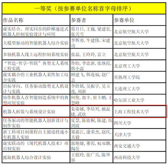 8月21日,第三届“余姚杯”中国高校机器人实验教学创新大赛决赛在浙江大学举行,我校机械与汽车工程学院教师团队朱姿娜、李培兴、赖磊捷、武欣老师的实验作品《机器人拆装与系统设计实验荣获全国一等奖。