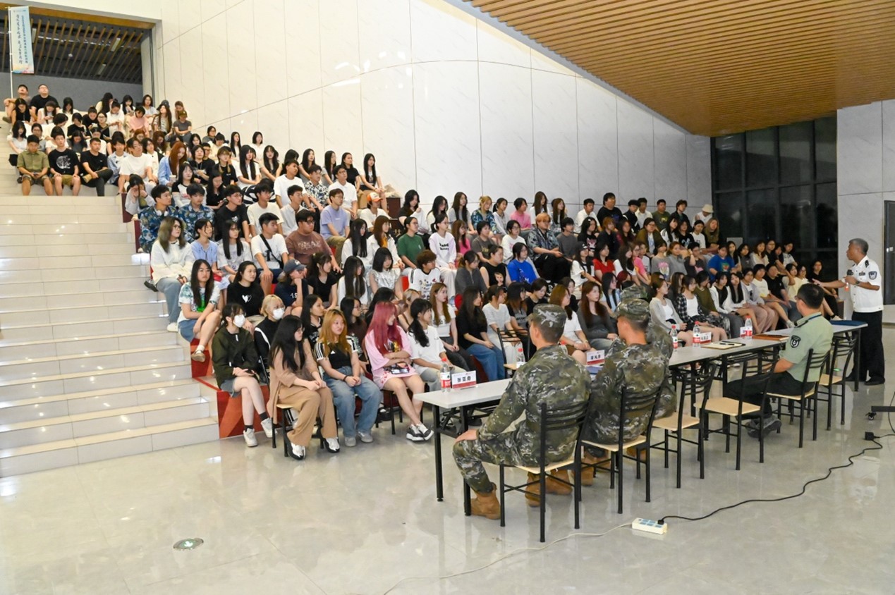 8月30日晚上,国际创意设计学院在长宁校区产教融合大楼举办2024级新生入学教育暨军训动员大会。艺术设计学院党委副书记马建立、上海市公安局沪西高校派出所高级警官陶忠、军训师独立营教官谢光华、新生辅导员李志海出席活动,活动由马建立主持。