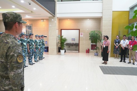 在教学巡视间隙,朱晓青还慰问了正在紧张军训的24级参训学生和承训教官。