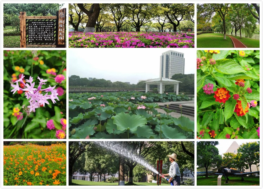 后勤实业发展中心一线员工对学校各类植株花卉进行布局美化,结合本年度学校绿化工作计划进行绿化改造,使程园处处生机勃勃。