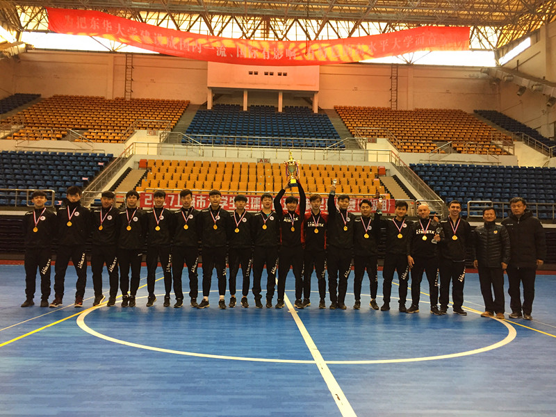 12月26日,上海市大学生足球联赛超级组比赛在东华大学延安西路校区落下帷幕,我校高水平足球队蝉联赛事冠军。我校足球队外籍教练员德米特里获最佳教练员称号,蒋文锋获最佳射手称号,吴正茂获最佳运动员称号,周晔获最佳守门员称号,包揽了赛会给予了所有运动员、教练员个人荣誉称号。