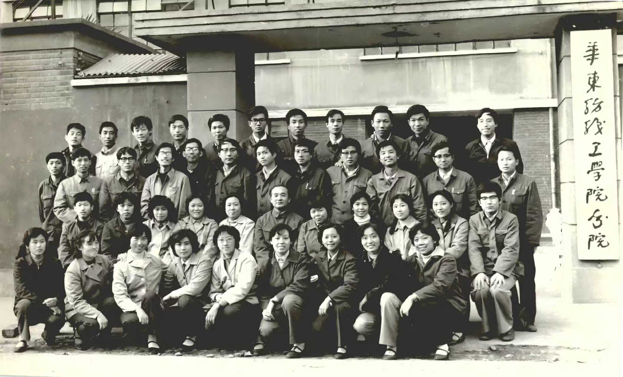 78届纺织专业学生华纺分院门口合影