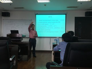5月4日下午,上海对外经贸大学张元庆副教授应数理与统计学院邀请在行政楼1307学术报告厅为广大师生作题为“SemiparametricSpatialPanelDataandit’sApplication”的学术报告。报告会由数理与统计学院王国强教授主持。张元庆博士综述了空间面板数据模型理论的国内外研究进展,详细讲解了与他的合作者在半参数空间面板数据模型理论及其应用方面的研究成果。接着,他介绍了空间模型理论在金融方面的应用,并对空间理论模型的进一步研究做了展望。张博士的报告内容翔实,讲解深入浅出,给与会师生带来了空间面板数据模型理论的前沿和热点问题,开阔了大家的学术视野。报告结束后,张博士与参加讲座的青年教师和研究生就空间计量经济学理论中的热门话题做了深入的交流与探讨。据悉,张元庆,男,副教授,北京大学博士后,上海财经大学经济学博士(中美联合培养),主要从事空间计量经济学、区域经济学、大数据(高维)分析和金融工程等方面的研究。以第一作者(通讯作者)在RegionalScienceandUrbanEconomics(SSCI),EconometricReviews(SSCI),Journa