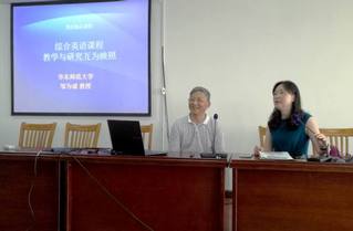 应外国语学院大学英语听力教学团队的邀请,6月9日下午,在行政楼1508报告厅,华东师范大学外语学院的邹为诚教授为我校“博雅讲堂”作题为“外语课堂研究”的学术讲座。参加讲座的不仅有外国语学院的师生,还吸引了其他学院的研究生和本科生。讲座由外国语学院王勤书记主持。邹为诚教授的讲座围绕“英语课程教学与研究互为映照”展开,既高屋建瓴,紧扣理论前沿,又深入浅出,联系大学英语的教学实际。他介绍了当前教育语言学研究的主要方面、二语习得理论的发展现状、教学与研究互为映照的范式研究和综合英语课程教学的实践案例,以及面向理工科学生的英语教学方法等等。邹教授平易近人、风趣幽默,讲座内涵丰富,思想深刻,现场气氛高涨。两个多小时的讲座在全场热烈的掌声中圆满结束。仍然有很多老师热切地向邹教授请教问题,邹教授又在1504会议室对老师们的问题一一作了详细的解答。会后,外国语学院的老师们与邹为诚教授合影留念。王勤书记鼓励老师们以邹教授为楷模,严谨治学、为人师表,积极提高自身的教研能力。邹为诚,教授,博导,华东师范大学外国语言研究中心主任,英语教师教育课程负责人;教育部教育资源委员会委员,中国语言教育学会副会长,中国外语