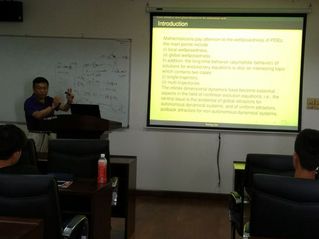 6月9日下午,在行政楼1307报告厅,数理与统计学院邀请东华大学秦玉明教授作题为“非线性自治发展方程的整体吸引子”的学术讲座。参加讲座的有数理与统计学院的青年教师及部分学生。报告会由数理与统计学院王国强教授主持。秦教授首先回顾了非线性发展方程的应用背景和国内外研究进展。接着,详细讲解了非线性自治发展方程整体吸引子的适定性等重要结论。最后,秦教授分享了他申报上海市自然科学奖的经验和体会。秦教授的报告内容丰富,针对性强,开阔了师生们的学术视野,增长了知识,使大家深受启发、受益匪浅。秦玉明,教授、博士生导师,复旦大学博士、巴西国家科技部国家科学计算实验室(LNCC)博士后,东华大学非线性科学研究所所长,理学院教授委员会常务副主任,应用数学系主任;任八个国际期刊的编委,美国《MathematicalReviews》特约评论员,国家自然科学基金委员会项目通讯评议专家,中国工业与应用数学学会(CSIAM)理事,上海市工业与应用数学学会(SHSIAM)理事、学术委员会委员,上海市非线性科学学会常务理事,上海市学位委员会第五届学科评议组成员;曾任河南大学特聘教授,河南省学术技术带头人,主持和承担20余