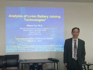 4月19日下午,应汽车工程学院之邀,美国通用汽车主任级研究员WayneCai博士在行政楼1012做了题为“Analysisoflithium-ionbatteryweldingforelectricvehicles”的学术讲座,本次讲座由邢彦锋教授主持,汽车工程学院老师和研究生聆听了本次讲座。WayneCai研究员首先讲解了电动汽车和锂电池的发展现状,指出了中国电动汽车与美国、德国、日本等国外电动汽车的不同之处。然后介绍了美国通用汽车锂电池汽车ChevyVolt的基本情况,分析了锂电池零部件—锂电池—电池模块—电池包的制造过程,以及18650电池和其他电池的构造。他重点讲解了锂电池的超声焊、电阻焊等5种焊接方法的优缺点,最后分享了特斯拉汽车锂电池制造的情况。WayneCai研究员用自己丰富的科研知识讲解了锂电池的制造装配过程,在报告会上,同学们和老师学术热情高涨,积极和Cai博士交流了自己的看法。同学们纷纷表示这次学术讲座让自己学到了很多知识,为自己以后的研究和学习积累了很多宝贵经验。