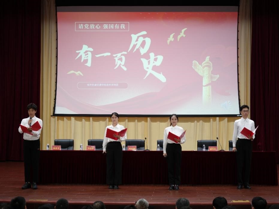 青年讲师团带来了节目《有一页历史》,为新生讲述了中国共产党百年奋斗的光辉历程和伟大成就,展现了轨院青年对党和祖国的无限忠诚及对未来的坚定承诺,激励我们不忘初心、牢记使命。