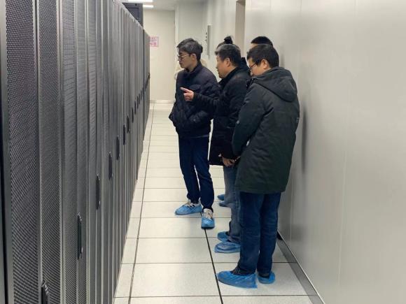 上海外国语大学信息技术中心副主任张宁一行在信息办老师的陪同下,参观了我校新建的核心机房。