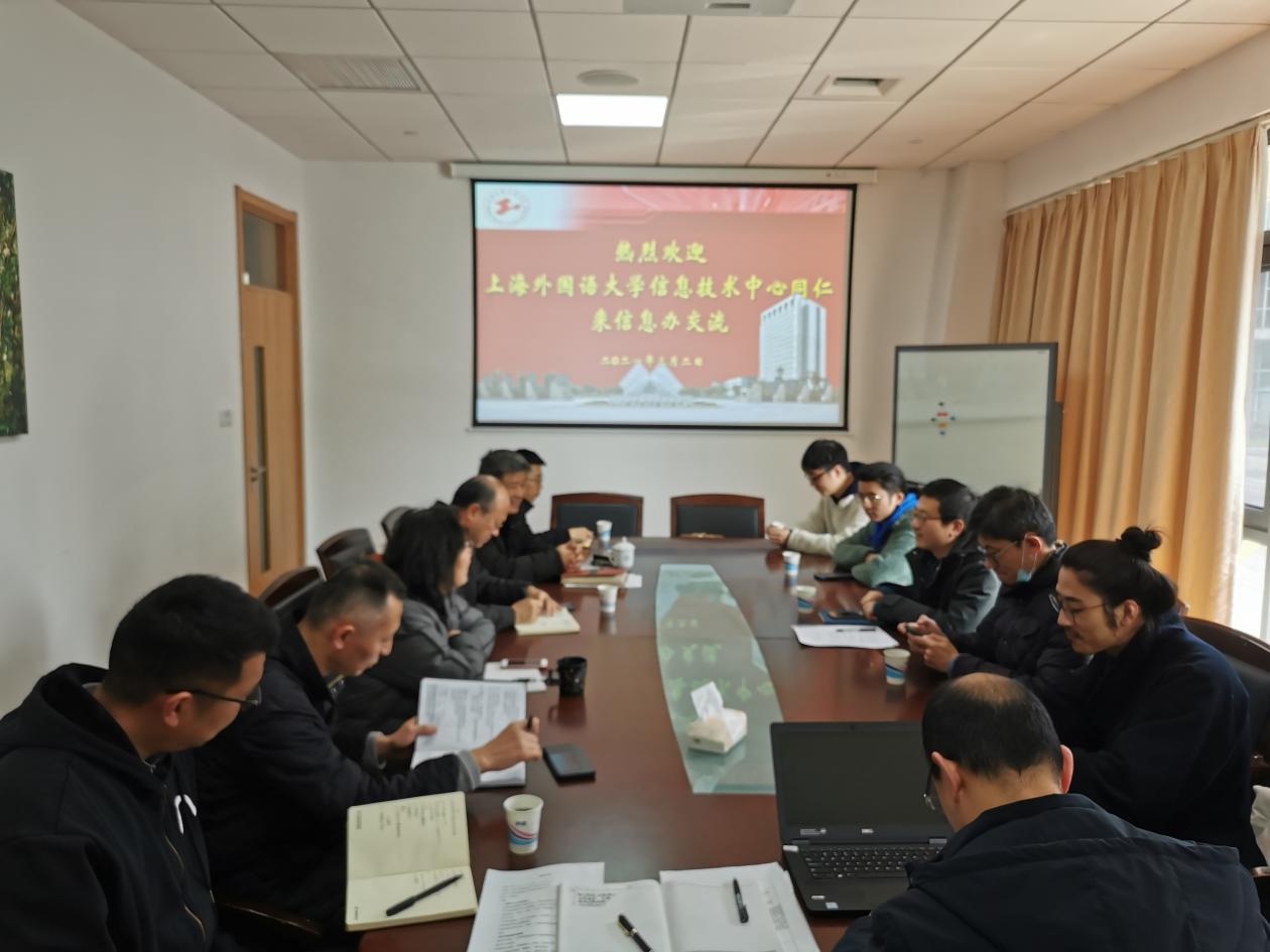 3月2日上午,上海外国语大学信息技术中心副主任张宁一行来我校信息化办公室调研。信息化办公室主任史志才,副主任余粟以及各科室负责人在第二图文信息中心103会议室接待了来访一行,并进行了深入交流。