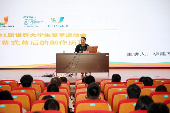 开班式后,李建平导演以《大运会开幕式的幕后历程》为题分享了第31届世界大学生夏季运动会开幕式幕后的创作历程,引导青年共同推动世界文化艺术的繁荣发展,为构建人类命运共同体贡献力量。