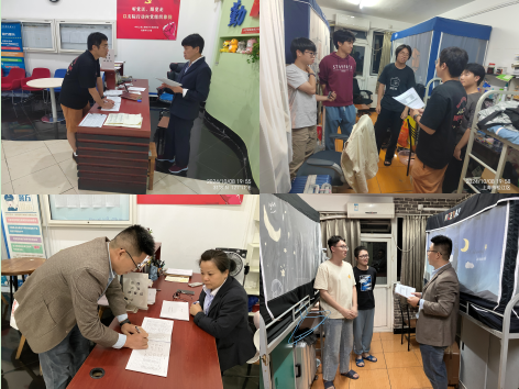 辅导员们走进学生宿舍,通过和宿管沟通,和学生谈话,关心学生安全、卫生、饮食、作息等状况,了解学生课余时间在宿舍的学习与娱乐安排,鼓励同学们珍惜在宿舍的时间,把宿舍建设成为学习的第二教室。