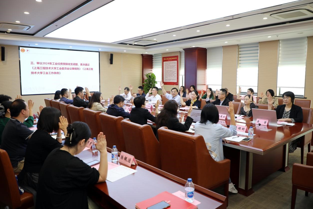 会议审议通过了2024年工会经费预算收支调整,表决通过了《上海工程技术大学第七届工会委员会议事规则(试行)》,一致同意将《上海工程技术大学工会工作条例(试行)》提请学校党委会审定。同时,按照市教育工会换届工作的部署和相关要求,会议选举产生上海工程技术大学出席上海市教育工会第十一次代表大会的正式代表。