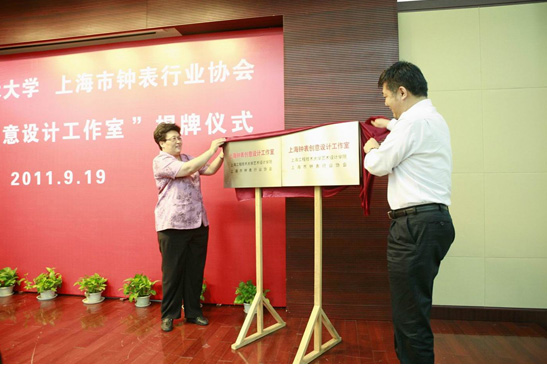 | 上海钟表创意设计工作室的成功挂牌是上海工程技术大学学科链、专业链与地方产业链对接的又一典范,为学校产学研合作对接平台再谱华章。 艺术产学结硕果,钟表设计谱华章。9月19日上午11:00,在上海轻工业工会联合会主导下,上海市钟表行业协会在我校设立的“上海钟表创意设计工作室”的揭牌仪式在图文信息中心第三报告厅隆重举行。 校长汪泓、副校长程维明、校办主任史健勇,艺术设计学院院长马新宇,院党总支书记许传宏、上海市经济团体联合会党委书记、秘书长、上海轻工业工会联合会顾问胡云芳、上海市轻工业协会执行副会长俞友涌,上海市钟表行业协会会长董国璋,上海市钟表行业协会秘书长蔡辉明,上海轻工业工会联合会副主席姚志坚,上海轻工业工会联合会钟表行业分会主席张利生,校学生处处长王明复,教务处长鲁嘉华,研究生处长陈思浩等领导出席了揭牌仪式。揭牌式由上海轻工业工会联合会副主席应蓓卿主持。