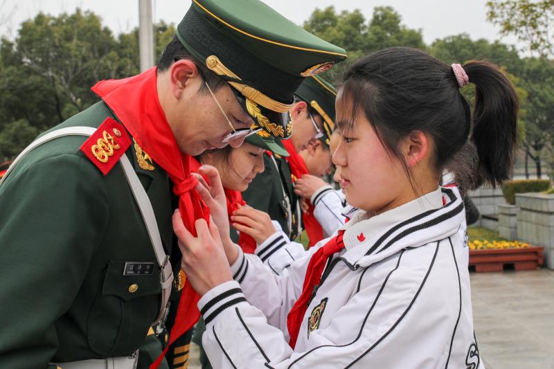 升旗仪式后,出席活动的领导为优秀升旗、护旗手和优秀少先队员颁发了荣誉证书,鼓励其继续传递爱国热情,坚定不移跟党走。国旗班青年团员还为刚刚加入共产主义青年团的中学生代表佩戴上了团徽,小同学们也将红领巾系在每一位国旗班成员的胸前,传递着共青团与少年队的真挚情谊。