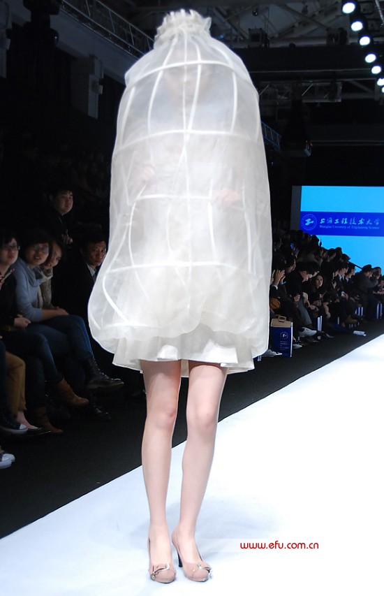 在4月13号的上海时装周上,上海工程技术大学服装学院毕业生优秀作品发布会于在800秀举行。本次发布会以 “控”为主题,以个性化的设计语言对服装艺术进行大胆演绎,表达出对艺术、时尚及服装文化的理解和探索,为时尚界吹起一股清新之风。“控kong”这一设计主题为我们传达了设计由意念所驱使,而意念受到各种内外在的影响这一设计理念,为我们不由自主地呈现出各种“overdesign”,作品突出原创与个性,在款式造型及材质选用上都极富创意。 链接:http://www.efu.com.cn/data/2012/ |