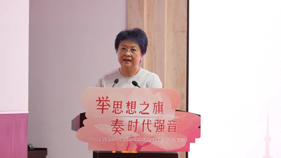 10月16日,由上海市妇联主办,上海市三八红旗手联谊会、松江区妇联与我校联合承办的“举思想之旗 奏时代强音”——上海市三八红旗手讲师团思政党课进校园暨松江区“领头雁”培训活动在我校举行。校党委副书记、副校长、妇工委主任朱晓青,上海市三八红旗手联谊会会长陈岩,松江区妇联党组书记、主席张军梅出席活动,松江大学城各高校妇工委、师生代表,松江区优秀青年女性代表以及松江区妇联2024年“领头雁”培训班全体学员参加活动。